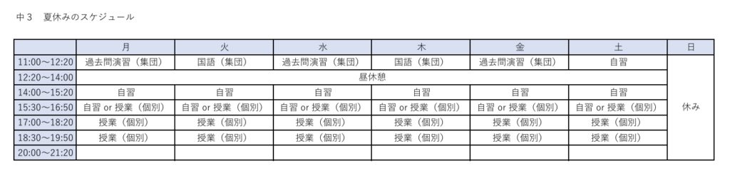 ということで、以下、中3生の夏のスケジュールです。